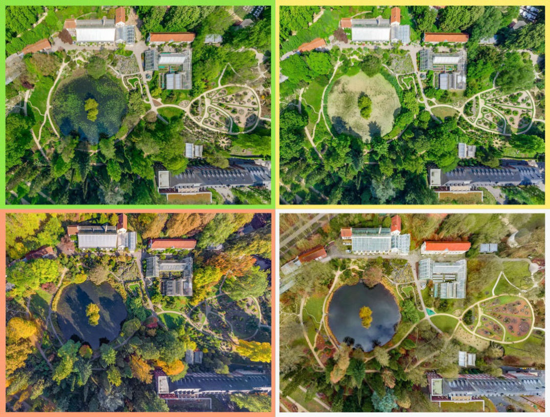4 Rundgänge bestehend aus je 47 Standorten, Indoor und Outdoor, zu Lande und aus der Luft